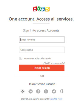 5. Haciendo clic, se abrirá una ventana en la que debes iniciar sesión con tu usuario y contraseña de Zoho.